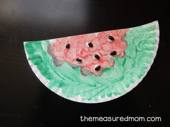 Finally, we used Do-a-Dot markers and dry black beans to make this paper plate watermelon.