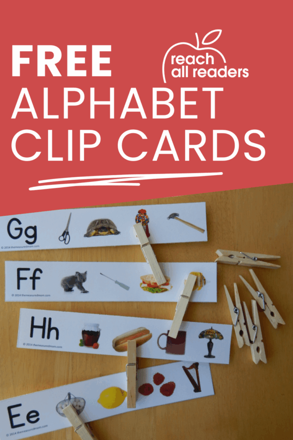 For each strip, my son clipped the picture that started with the letter on the left. If you want to make these self checking, you could draw a little dot on the back where the clothespin should go. Then your child could easily flip over the card after he’s clipped it to see if he’s right.