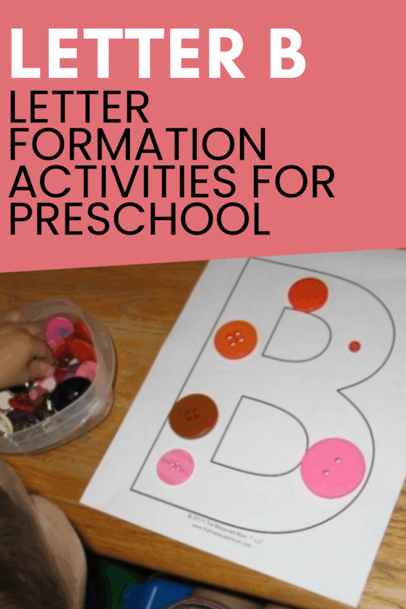 This type of activity is still challenging for my Four. After a few attempts at making a B with blocks, he became very frustrated, so we’ll try again another day. I made this letter B as an example; creating the curved edges would be something young preschoolers probably would not come up with on their own.