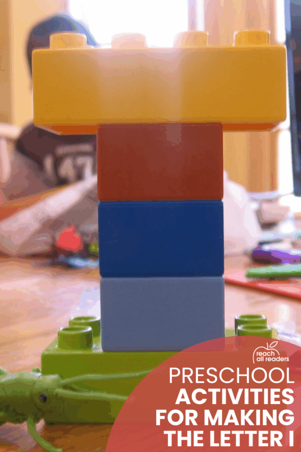I gave my Two these five Duplo blocks to see if he could make the letter I on his own. He needed some help, but was proud of the final product.