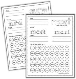I love these sight word worksheets and those are the only 2 words that are on our list that I couldn’t find in your other materials. Thanks so much!