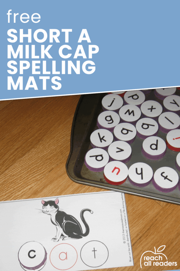 Last week I shared a tutorial for how to make your own milk or bottle cap letters. Today I’ll show you how to use my printables for some hands-on phonics and spelling practice with the short a word families.