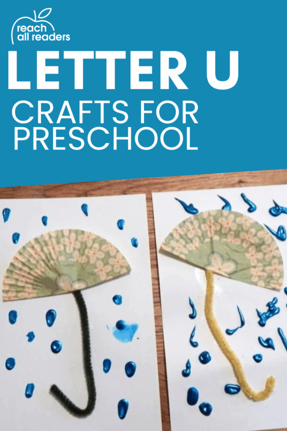 Family Crafts gave us the inspiration for this fun umbrella craft. We decided to use blue puffy paint for the raindrops, which was a little tricky. You might be surprised that my Two did the neater project on the left; my Four did the one on the right.