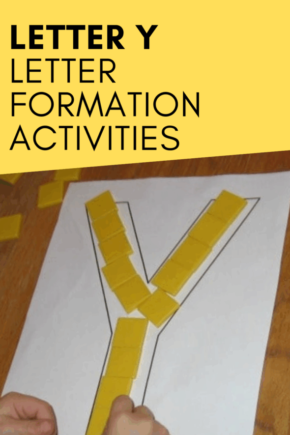 My boys like to write the letter with their fingers – especially if the writing surface is something they love to eat! This time they had fun licking their fingers after writing the letter Y in yogurt (tinted with yellow food coloring).