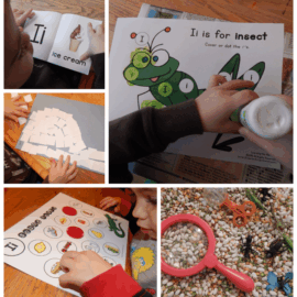 I just go through my Alphabet page and click on a particular letter, where I’ve listed a HUGE variety of activities for crafts, books, math, etc. Then I choose the activities best suited to my son, his interests, and his ability level. I also print materials from Learning the Alphabet that I think he’d enjoy.