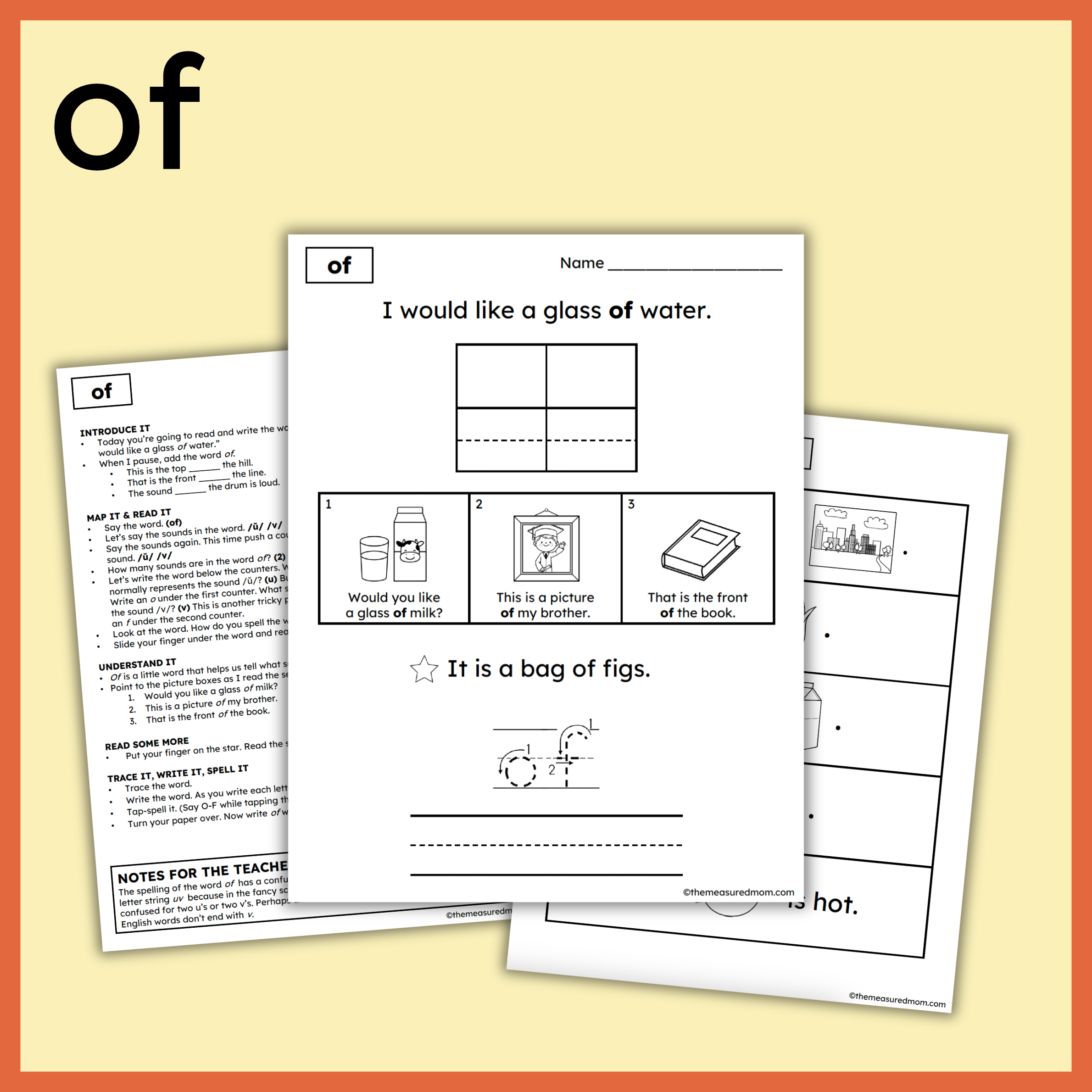 Free high frequency word lesson: OF Join our email list and get the FREE lesson, student worksheet, and decodable text!