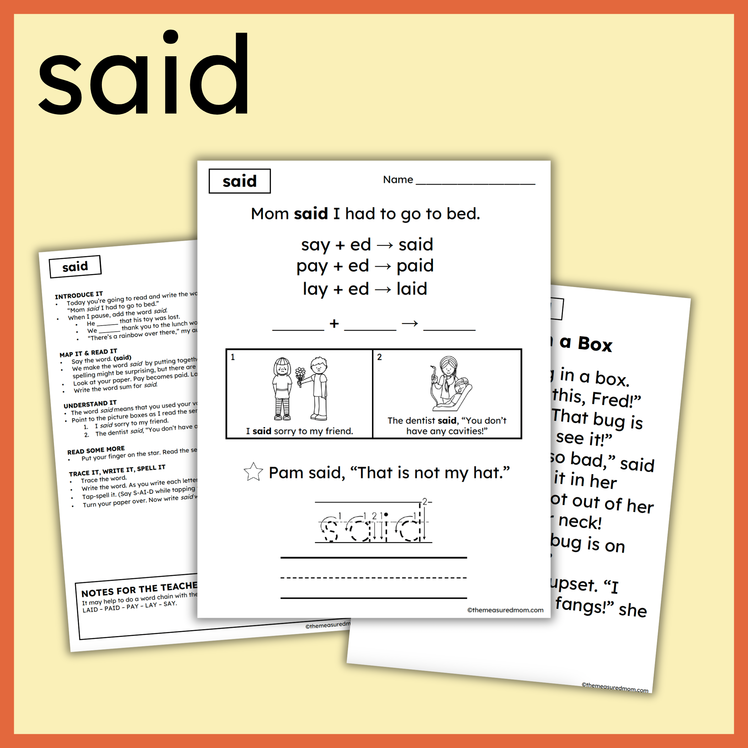 Free high frequency word lesson: SAID Join our email list and get the FREE lesson, student worksheet, and decodable text!