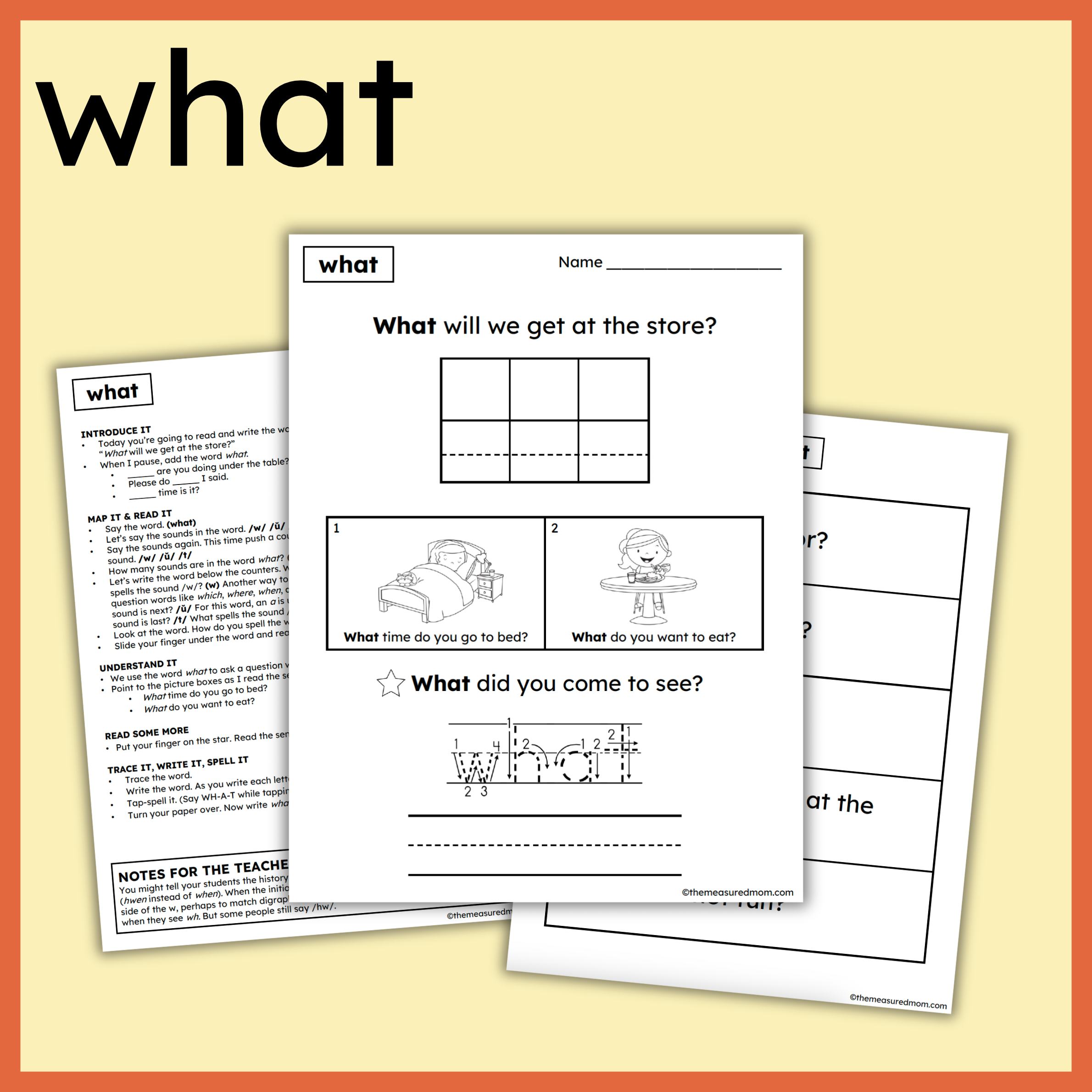 Free high frequency word lesson: WHAT Join our email list and get the FREE lesson, student worksheet, and decodable text!